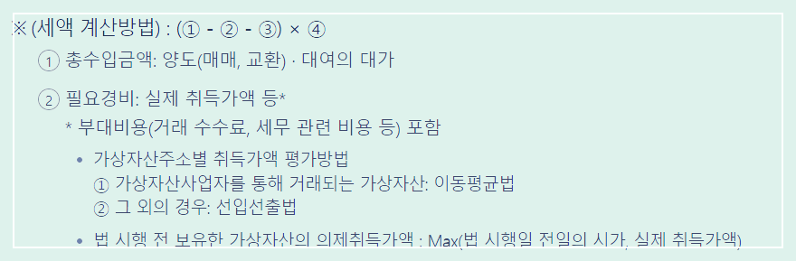 - 양도소득: 가상자산을 매도하거나 교환할 때 발생하는 소득으로, 양도 차익에 대한 세금을 부과합니다.