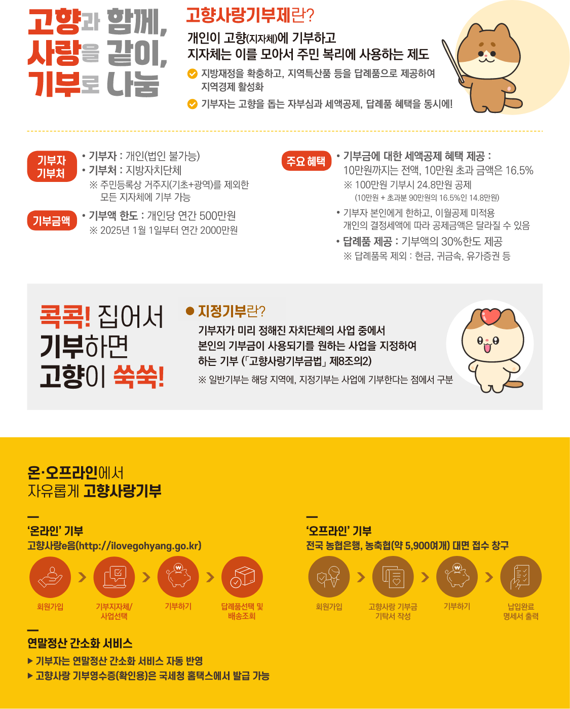 - 고향사랑 기부금은 연말정산 시 세액공제 혜택을 제공합니다.