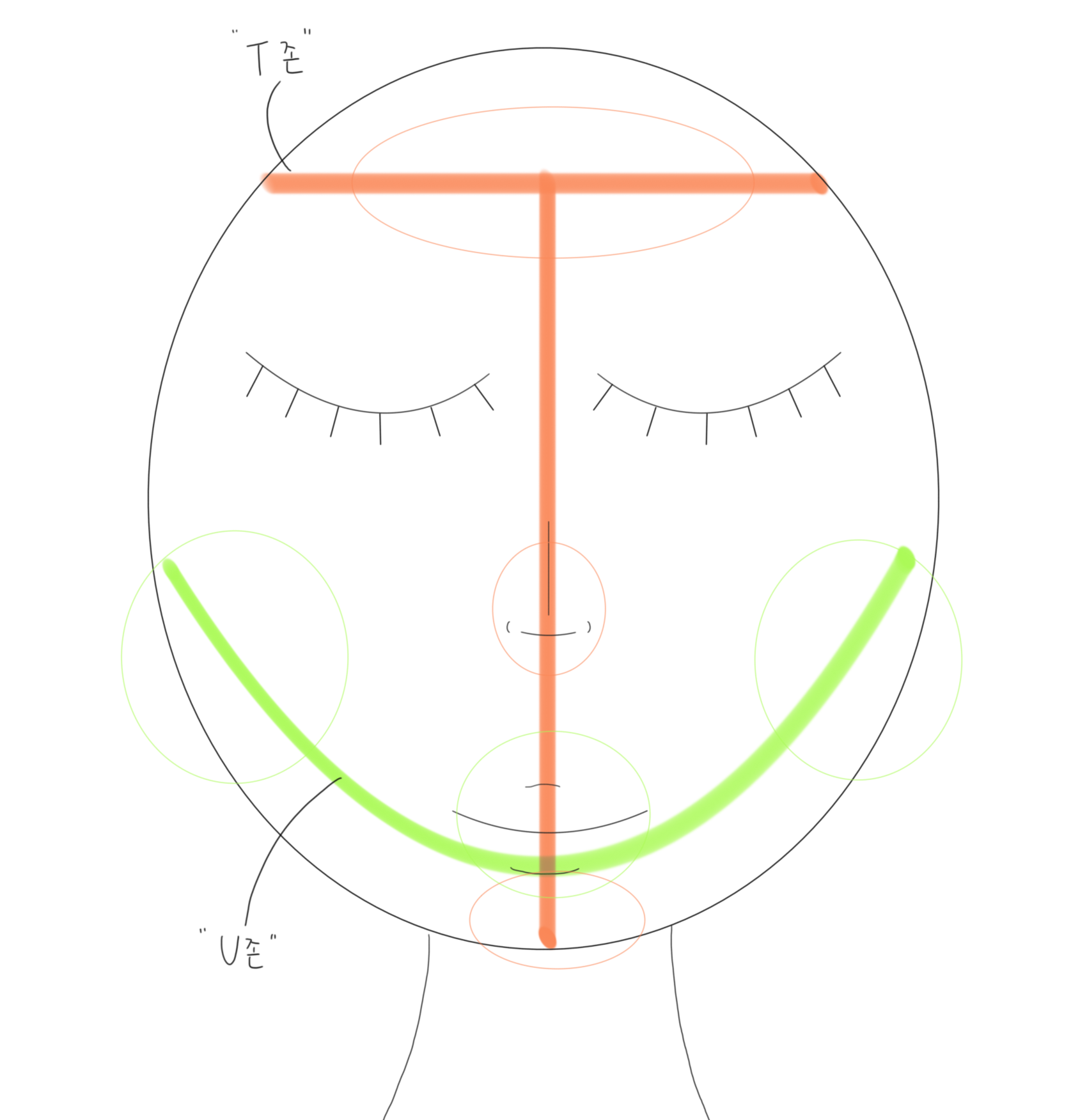 우리가 일반적으로 T존(티존)이라고 부르는 부분은 말 그대로 얼굴 위로 T를 덧대어보면 이마- 코- 턱 부위입니다. U존(유존)도 마찬가지로 얼굴에 U를 덧대어 보면 입과 볼이 해당됩니다. 티존이 피지 분비가 많은 지성 부분이고 유존이 건조한 건성 부분입니다.