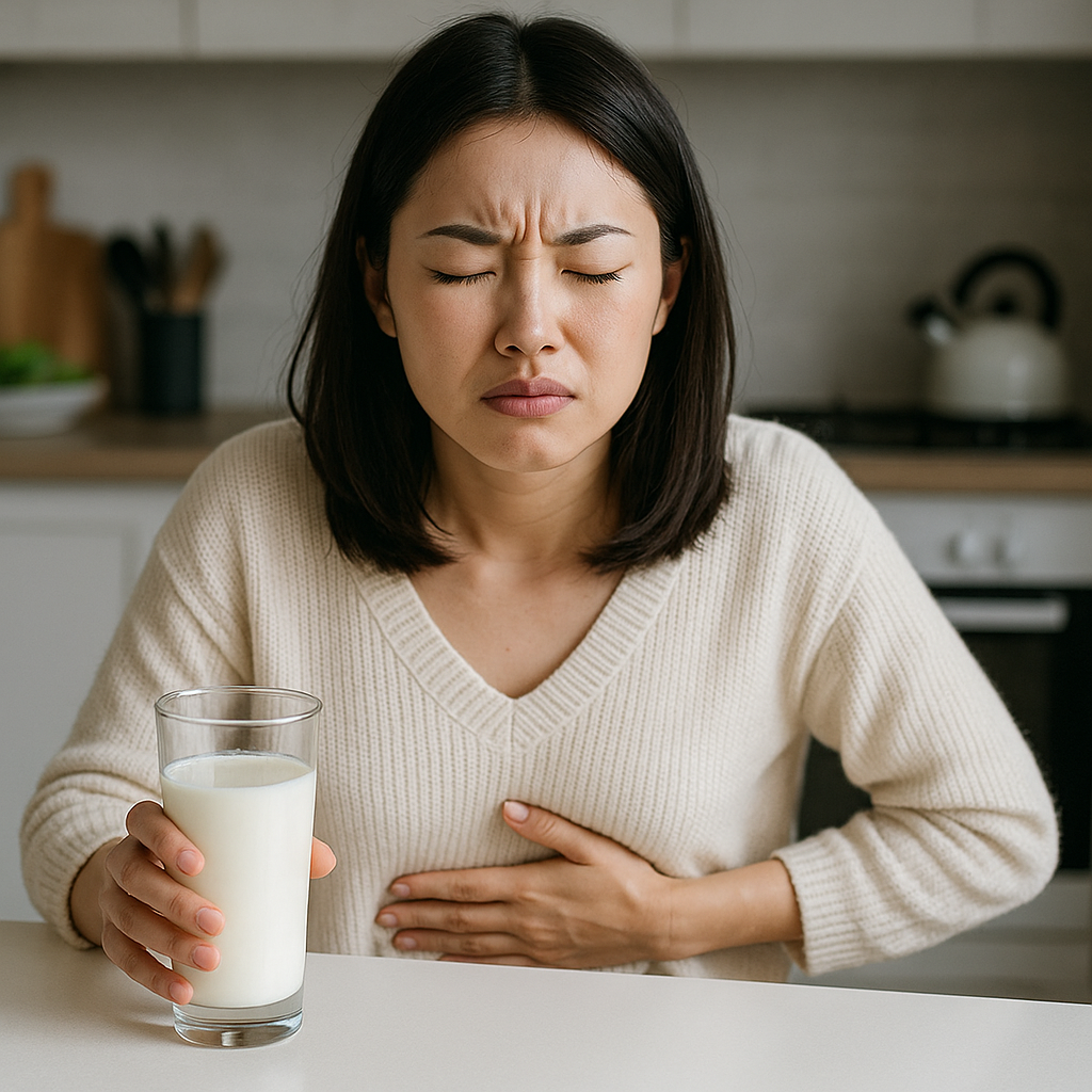 그러나 락타아제가 부족하면 유당이 그대로 대장까지 내려가 장내 세균에 의해 발효되며 가스(수소, 메탄 등)와 산성 물질이 발생합니다. 이로 인해 복부 팽만, 통증, 설사, 메스꺼움 같은 증상이 유발됩니다.