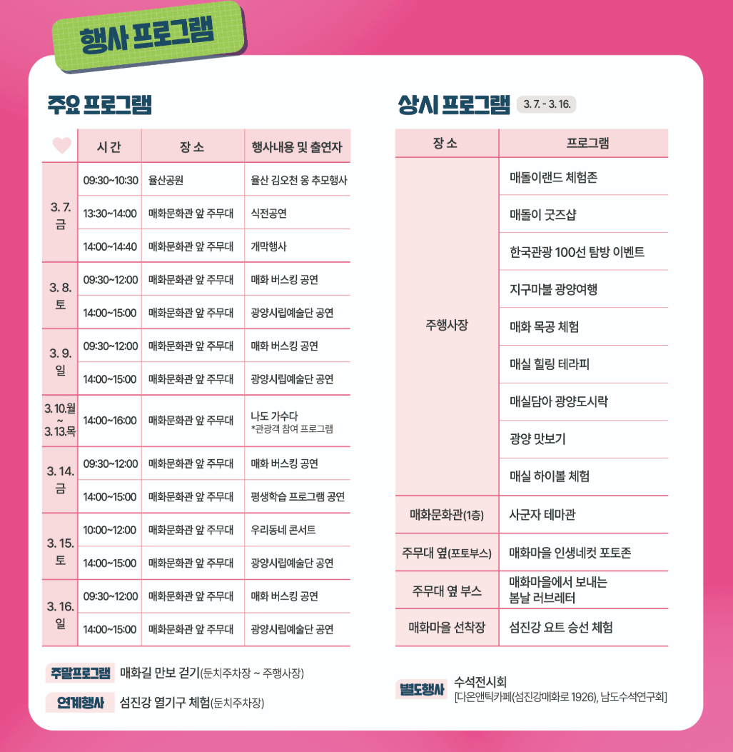 그렇다면 2025년 광양매화축제 일정과 주요 행사, 꼭 가봐야 할 명소까지 자세히 알아볼까요?