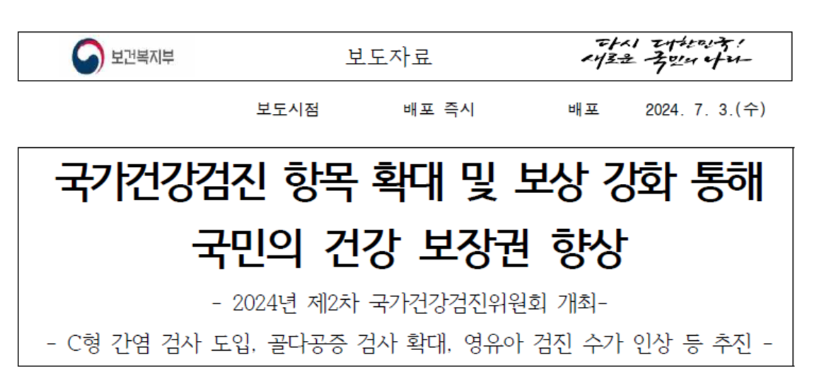 - 암 검진: 성별과 연령에 따라 주요 암(위암, 대장암, 유방암 등) 검사